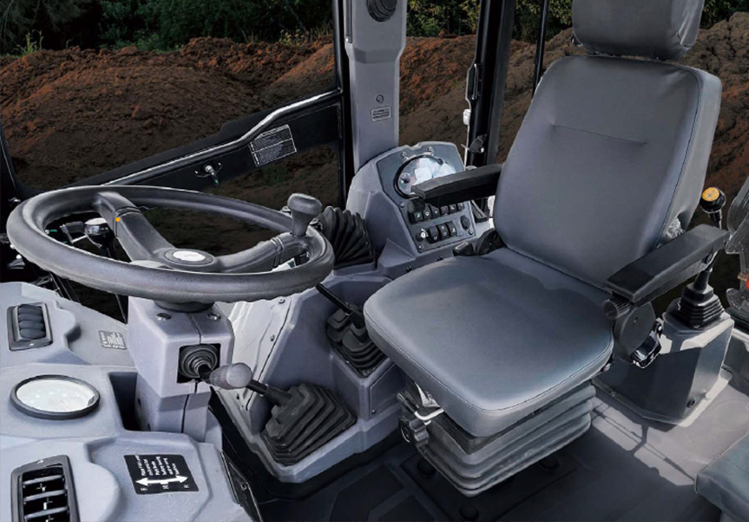 The machine operates effectively with 480 mm minimum ground clearance, 2,220 mm wheelbase providing a stable platform, and standard four-wheel drive system improving mobility across challenging terrain conditions. The loader section achieves 2.96 metres dump height and 3.39 metres load-over height with 1.26 m³ standard bucket capacity. Optional 6-in-1 multi-purpose bucket with 1.1 m³ capacity provides additional versatility for specialized applications. The backhoe offers 201-degree bucket rotation with square-cut bucket configuration.