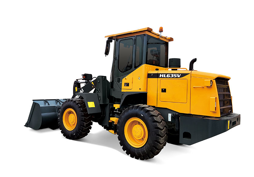 The Weichai WP6G125E22 engine features six cylinders with 105 mm bore and 130 mm stroke, displacing 6.7 litres. The HL635VL Front end loaders consume fuel from a 150-litre tank under typical load conditions. The 10,400 kg operating weight distributes across 17.5-25 12PR L3 tires as standard, with optional tube tires available for desert conditions.