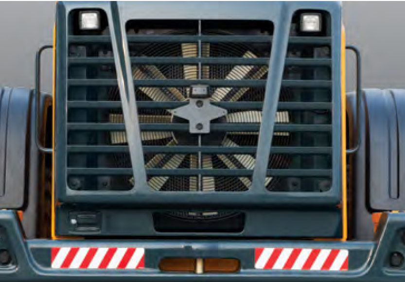 The hydraulic system executes complete bucket sequences in 11.1 seconds, maintaining productivity in continuous truck-loading operations. Regular maintenance benefits from 5,000-hour hydraulic oil change intervals whilst the optional reversible cooling fan integrates into the rear service door which swings open over 45 degrees for straightforward engine compartment access.
